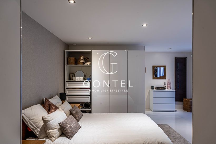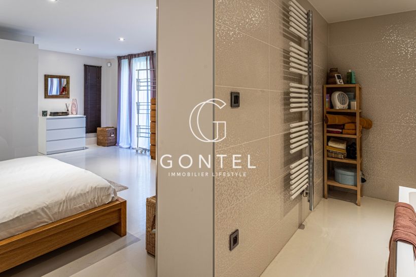 Côté pratique, la maison est équipée d'une buanderie, d'une pergola bioclimatique, d'un jacuzzi extérieur ainsi que de volets à lames orientables.