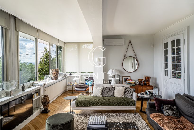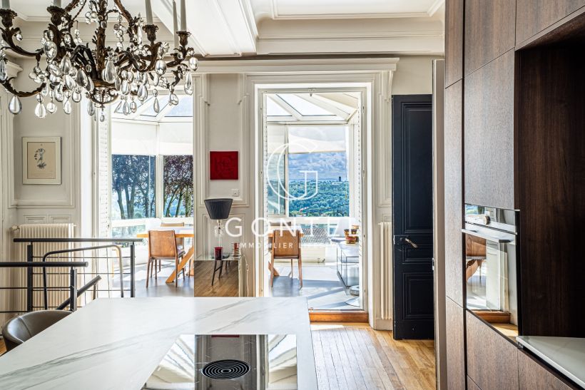 Gontel Monts d'Or vous propose ce superbe appartement au sein d'une propriété ancienne, sur les hauteurs de Collonges-au-Mont-d'Or, dans un quartier privilégié et intimiste, au panorama exceptionnel et avec un jardin piscinable.