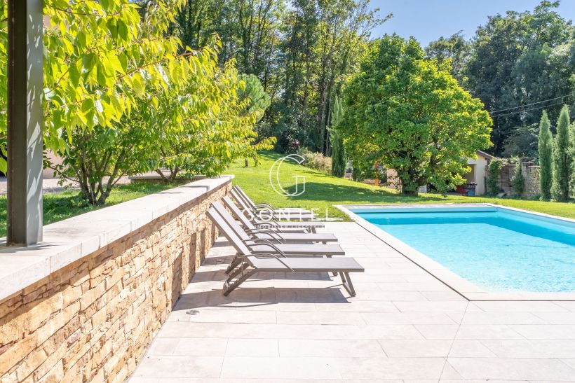 Un cadre de vie exceptionnel : Terrain arboré et paysagé de 3000 m², facile à entretenir, avec terrain de pétanque, piscine et pergola.