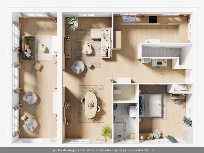 Rez-de-jardin : 117m² avec la possibilité de créer une suite parentale et les pièces de vie à ce niveau.